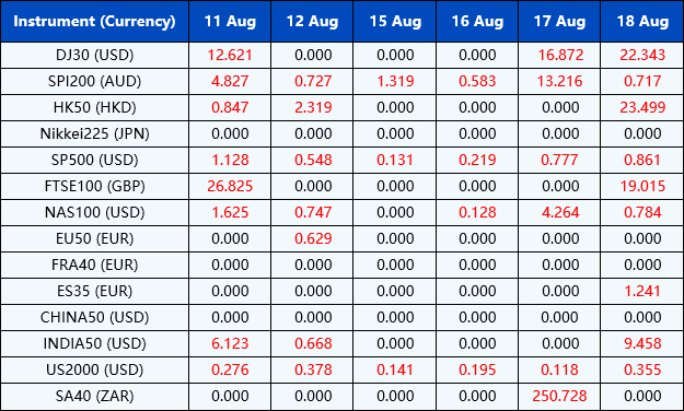 Please be advised that the dividends of the following index CFDs will be adjusted by upcoming ex-dividend dates. The comment for trading index CFDs will be in the following format “Div&<Product Name>&<Net Volume>” which show in the balance after the close of the day before the dividend payment date.