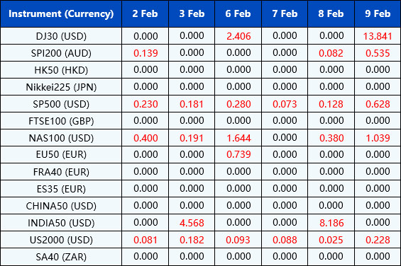 Please be advised that the dividends of the following index CFDs will be adjusted by upcoming ex-dividend dates. The comment for trading index CFDs will be in the following format “Div&<Product Name>&<Net Volume>” which show in the balance after the close of the day before the dividend payment date.