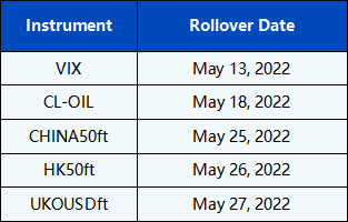 Please be advised that the following CFD instruments will be automatically rolled over as per the dates in the table below. As there can be a pricing difference between old and new futures contracts, we recommend clients to monitor their positions closely and manage positions accordingly.