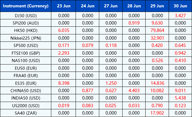 Please be advised that the dividends of the following index CFDs will be adjusted by upcoming ex-dividend dates. The comment for trading index CFDs will be in the following format “Div& <Product Name>&<Net Volume>”which show in the balance after the close of the day before the dividend payment date.