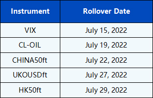Please be advised that the following CFD instruments will be automatically rolled over as per the dates in the table below. As there can be a pricing difference between old and new futures contracts, we recommend clients to monitor their positions closely and manage positions accordingly.
