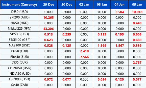 Please note the above data are subject to changes. Please refer to MT4/MT5 for details.