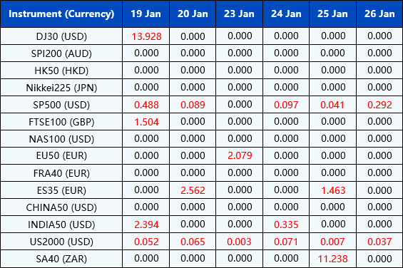 Please be advised that the dividends of the following index CFDs will be adjusted by upcoming ex-dividend dates. The comment for trading index CFDs will be in the following format “Div&<Product Name>&<Net Volume>” which show in the balance after the close of the day before the dividend payment date.