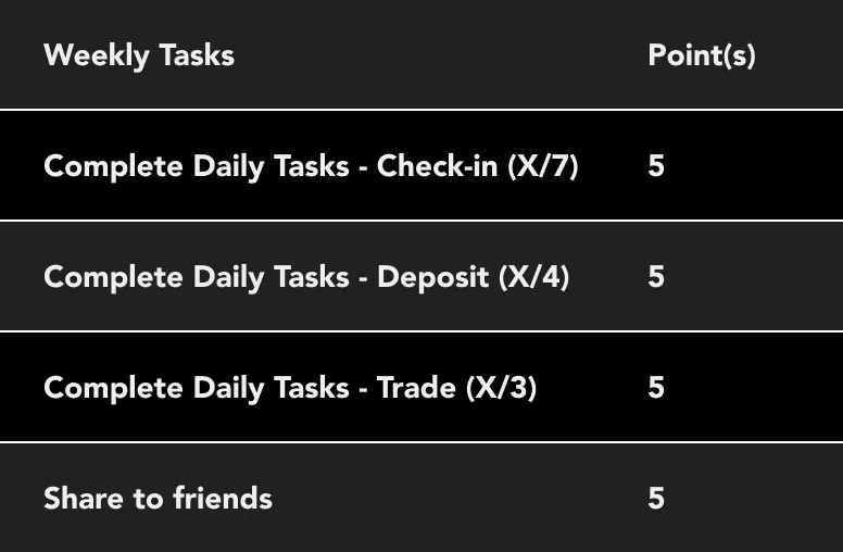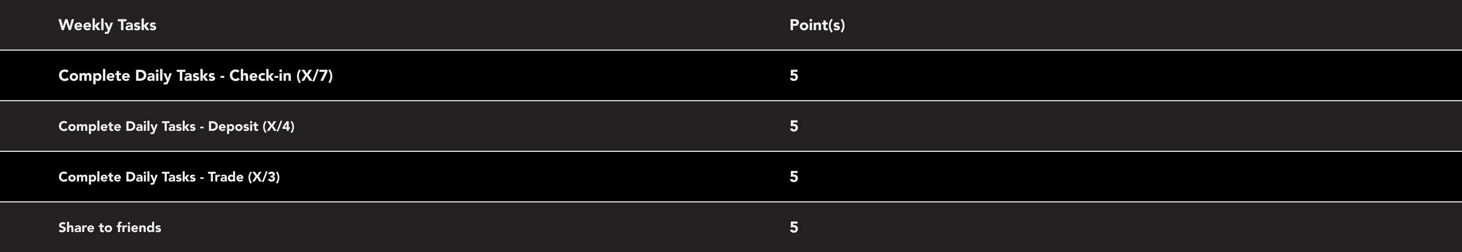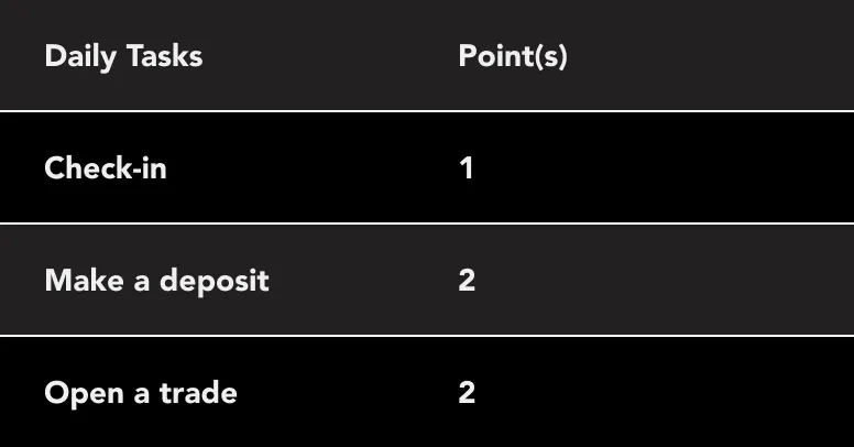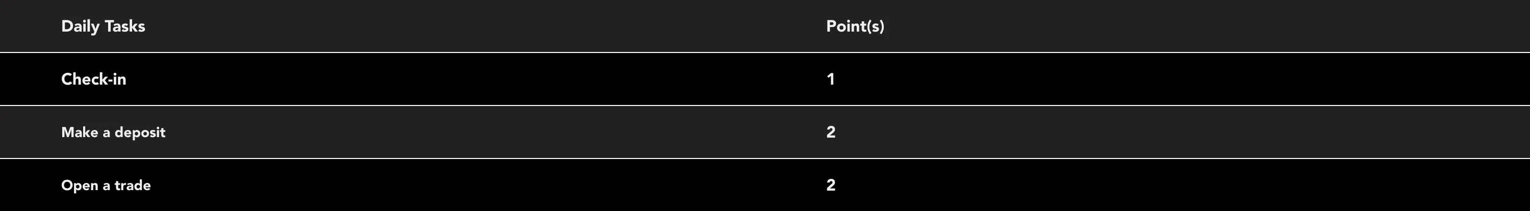 *The “Open a trade” task does not require the trading position to be closed, but the trading products are limited to Forex, Gold, Silver, Crude Oil spot, Crude Oil futures, or BTCUSD only.