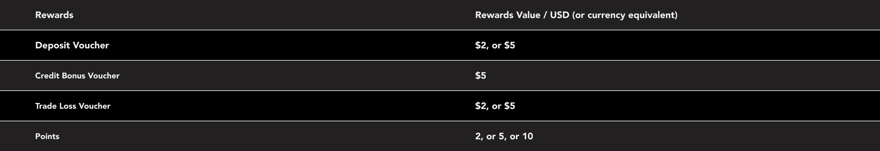 1.The “Christmas Spins, Endless Wins” promotion consists of various in-app activities to engage PU Prime App users. Reward (s) such as cash, Amazon gift card, Deposit Voucher(s), Trade Loss Voucher(s), and Credit Bonus Voucher(s) will be awarded to clients who have participated in the in-app activities and met the specific criteria.